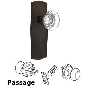 Prairie Collection - Passage Prairie Plate with Round Clear Crystal Glass Door Knob in Oil-Rubbed Bronze by Nostalgic Warehouse - 709556 | MyKnobs