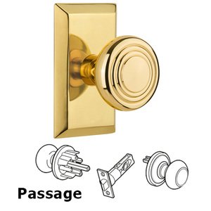 Studio Collection - Complete Passage Set Without Keyhole - Studio Plate with Deco Knob in Polished Brass by Nostalgic Warehouse - 709772 | MyKnobs