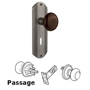 Deco Collection - Passage Deco Plate with Keyhole and Brown Porcelain Door Knob in Antique Pewter by Nostalgic Warehouse - 710280 | MyKnobs