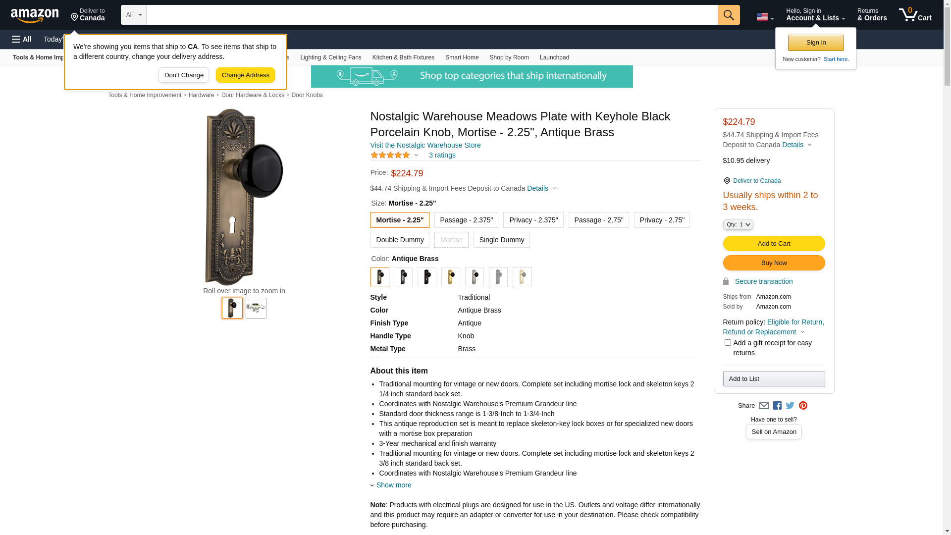 Meadows Collection - Mortise - Meadows Plate with Black Porcelain Knob with Keyhole in Antique Brass by Nostalgic Warehouse - 710405 | MyKnobs