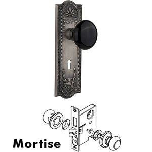 Nostalgic Warehouse - Mortise- Meadows Plate with Black Porcelain Knob with Keyhole in Antique Pewter