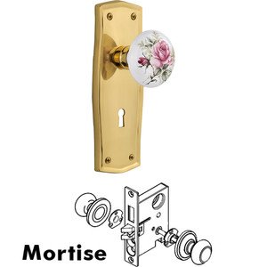 Mortise Prairie Plate w/ Rose Porcelain Knob w/ Keyhole in Polished Brass (NW-711303)