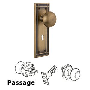 Mission Collection - Passage Mission Plate with Keyhole and New York Door Knob in Antique Brass by Nostalgic Warehouse - 711593 | MyKnobs