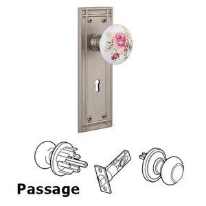Mission Collection - Passage Mission Plate with Keyhole and White Rose Porcelain Door Knob in Satin Nickel by Nostalgic Warehouse - 711668 | MyKnobs