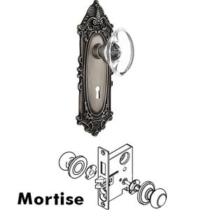 Mortise Victorian Plate w/ Oval Clear Crystal Knob w/ Keyhole in Antique Pewter (NW-711754)