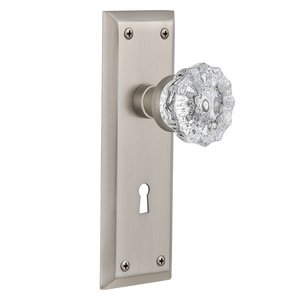 New York Collection - Passage New York Plate with Keyhole and Crystal Glass Door Knob in Satin Nickel by Nostalgic Warehouse - 711830 | MyKnobs