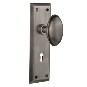 New York Collection - Passage New York Plate with Keyhole and Homestead Door Knob in Antique Pewter by Nostalgic Warehouse - 711901 | MyKnobs