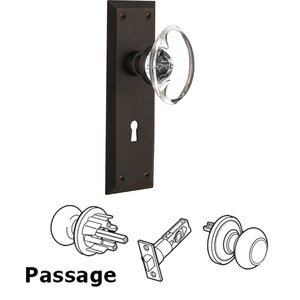 New York Collection - Passage New York Plate with Keyhole and Oval Clear Crystal Glass Door Knob in Oil-Rubbed Bronze by Nostalgic Warehouse - 711994 | MyKnobs