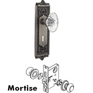 Mortise Egg & Dart Plate w/ Oval Fluted Crystal Knob w/ Keyhole in Antique Pewter (NW-712159)