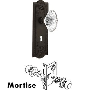 Nostalgic Mortise-Meadows Plate-Oval Fluted Crystal Knob-Oil-Rubbed Bronze (NW-712168)