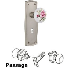 Prairie Collection - Passage Prairie Plate with Keyhole and White Rose Porcelain Door Knob in Satin Nickel by Nostalgic Warehouse - 712480 | MyKnobs