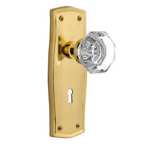 Nostalgic Warehouse Prairie Plate with Keyhole Waldorf Crystal Knob, Passage - 2.75", Unlacquered Brass