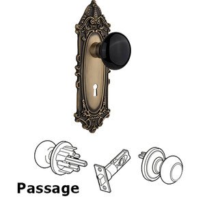 Victorian Collection - Passage Victorian Plate with Keyhole and Black Porcelain Door Knob in Antique Brass by Nostalgic Warehouse - 712545 | MyKnobs
