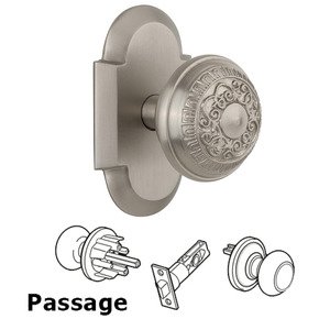 Nostalgic Warehouse Cottage Plate with Egg & Dart Door Knob, Passage - 2.375", Satin Nickel