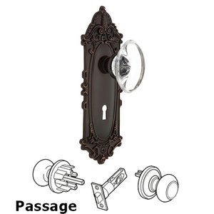 Victorian Collection - Passage Victorian Plate with Keyhole and Oval Clear Crystal Glass Door Knob in Timeless Bronze by Nostalgic Warehouse - 712867 | MyKnobs