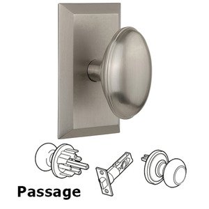 Studio Collection - Passage Studio Plate with Homestead Knob in Satin Nickel by Nostalgic Warehouse - 713227 | MyKnobs