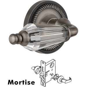 Rope Collection - Complete Mortise Lockset - Rope Rosette with Parlour Crystal Lever in Antique Pewter by Nostalgic Warehouse - 714495 | MyKnobs