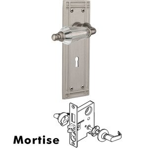 Mission Collection - Complete Mortise Lockset - Mission Plate with Parlour Crystal Lever in Satin Nickel by Nostalgic Warehouse - 714510 | MyKnobs