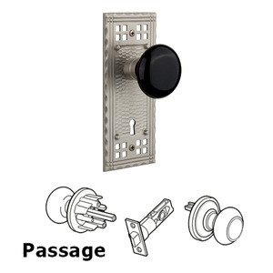 Craftsman Collection - Passage Craftsman Plate with Black Porcelain Knob and Keyhole in Satin Nickel by Nostalgic Warehouse - 715329 | MyKnobs