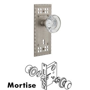 Craftsman Collection - Mortise Craftsman Plate with Round Clear Crystal Knob and Keyhole in Satin Nickel by Nostalgic Warehouse - 715797 | MyKnobs