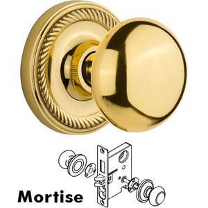 Rope Collection - Mortise Rope Rosette with New York Knob and Keyhole in Unlacquered Brass by Nostalgic Warehouse - 716917 | MyKnobs