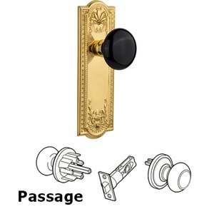 Nostalgic Warehouse Meadows Plate with Black Porcelain Knob, Passage - 2.375", Unlacquered Brass