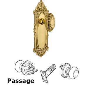 Victorian Collection - Passage Victorian Plate with Victorian Knob in Unlacquered Brass by Nostalgic Warehouse - 717087 | MyKnobs