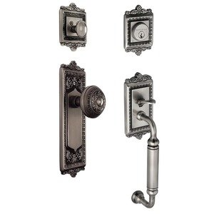 Nostalgic Warehouse 719447 Egg and Dart C Grip Entry Set & Knob, Backset - 2.375", Antique Pewter