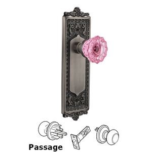 Egg & Dart Collection - Nostalgic Warehouse - Passage - Egg & Dart Plate Crystal Pink Glass Door Knob in Antique Pewter by Nostalgic Warehouse - 720549 | MyKnobs