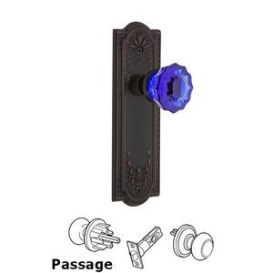 Meadows Collection - Nostalgic Warehouse - Passage - Meadows Plate Crystal Cobalt Glass Door Knob in Timeless Bronze by Nostalgic Warehouse - 720666 | MyKnobs