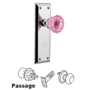 New York Collection - Nostalgic Warehouse - Passage - New York Plate Crystal Pink Glass Door Knob in Bright Chrome by Nostalgic Warehouse - 720827 | MyKnobs