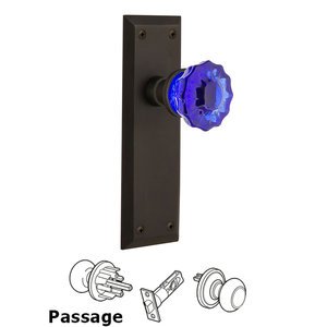 New York Collection - Nostalgic Warehouse - Passage - New York Plate Crystal Cobalt Glass Door Knob in Oil-Rubbed Bronze by Nostalgic Warehouse - 720831 | MyKnobs
