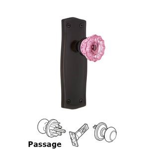 Prairie Collection - Nostalgic Warehouse - Passage - Prairie Plate Crystal Pink Glass Door Knob in Timeless Bronze by Nostalgic Warehouse - 720951 | MyKnobs