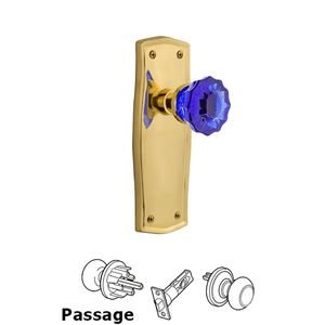 Prairie Collection - Nostalgic Warehouse - Passage - Prairie Plate Crystal Cobalt Glass Door Knob in Polished Brass by Nostalgic Warehouse - 720961 | MyKnobs