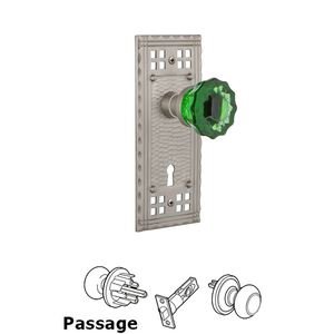 Craftsman Collection - Nostalgic Warehouse - Passage - Craftsman Plate with Keyhole Crystal Emerald Glass Door Knob in Satin Nickel by Nostalgic Warehouse - 721370 | MyKnobs