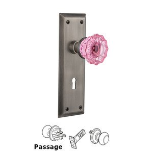 New York Collection - Nostalgic Warehouse - Passage - New York Plate with Keyhole Crystal Pink Glass Door Knob in Antique Pewter by Nostalgic Warehouse - 721795 | MyKnobs