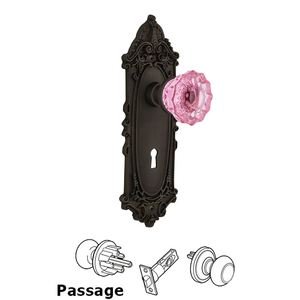 Victorian Collection - Nostalgic Warehouse - Passage - Victorian Plate with Keyhole Crystal Pink Glass Door Knob in Oil-Rubbed Bronze by Nostalgic Warehouse - 722028 | MyKnobs
