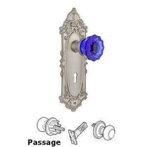 Victorian Collection - Nostalgic Warehouse - Passage - Victorian Plate with Keyhole Crystal Cobalt Glass Door Knob in Satin Nickel by Nostalgic Warehouse - 722050 | MyKnobs