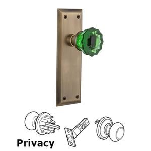 New York - Nostalgic Warehouse - Privacy - New York Plate Crystal Emerald Glass Door Knob in Antique Brass - Nostalgic Warehouse 724734