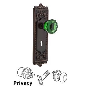 Egg & Dart - Nostalgic Warehouse - Privacy - Egg & Dart Plate with Keyhole Crystal Emerald Glass Door Knob in Timeless Bronze - Nostalgic Warehouse 725484