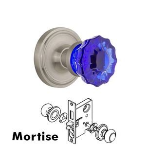Classic Collection - Nostalgic Warehouse - Mortise - Classic Rose Crystal Cobalt Glass Door Knob in Satin Nickel by Nostalgic Warehouse - 726080 | MyKnobs