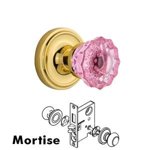 Classic Collection - Nostalgic Warehouse - Mortise - Classic Rose Crystal Pink Glass Door Knob in Unlaquered Brass by Nostalgic Warehouse - 726085 | MyKnobs