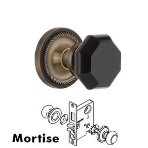 Rope Collection - Nostalgic Warehouse - Mortise - Rope Rose Waldorf Black Door Knob in Antique Brass by Nostalgic Warehouse - 726483 | MyKnobs