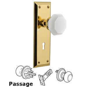 New York Collection - Passage - New York Plate with Keyhole with Waldorf White Milk Glass Knob in Polished Brass by Nostalgic Warehouse - 748480 | MyKnobs