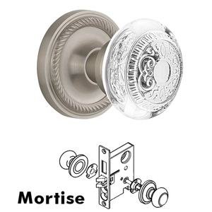 Nostalgic Warehouse 751686 Rope Rosette with Crystal Egg & Dart Mortise Door Knob, 2.25", Satin Nickel