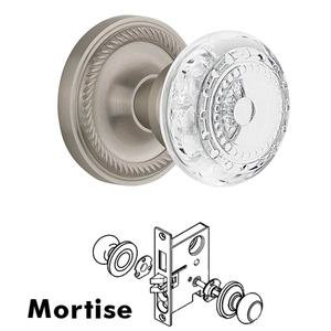 Rope Collection - Mortise - Rope Rosette With Crystal Meadows Knob in Satin Nickel by Nostalgic Warehouse - 752161 | MyKnobs