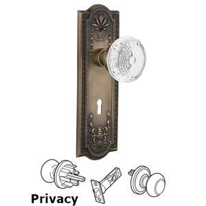 Nostalgic Warehouse 752597 Meadows Plate Privacy with Keyhole Crystal Door Knob, Backset Size: 2.75", Antique Brass