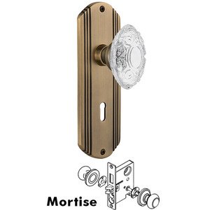 Deco Collection - Mortise - Deco Plate With Crystal Victorian Knob in Antique Brass by Nostalgic Warehouse - 755311 | MyKnobs