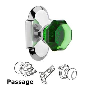 Cottage Collection - Nostalgic Warehouse - Passage - Cottage Plate Waldorf Emerald Door Knob in Bright Chrome by Nostalgic Warehouse - 720318 | MyKnobs
