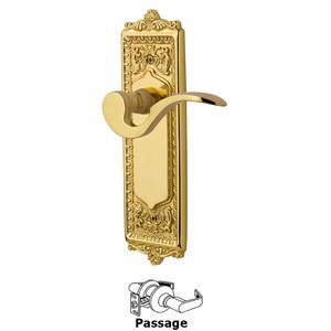 Nostalgic Warehouse 761973 Egg & Dart Plate Non-Handed Manor Lever Passage, Backset Size: 2.75", Unlacquered Brass